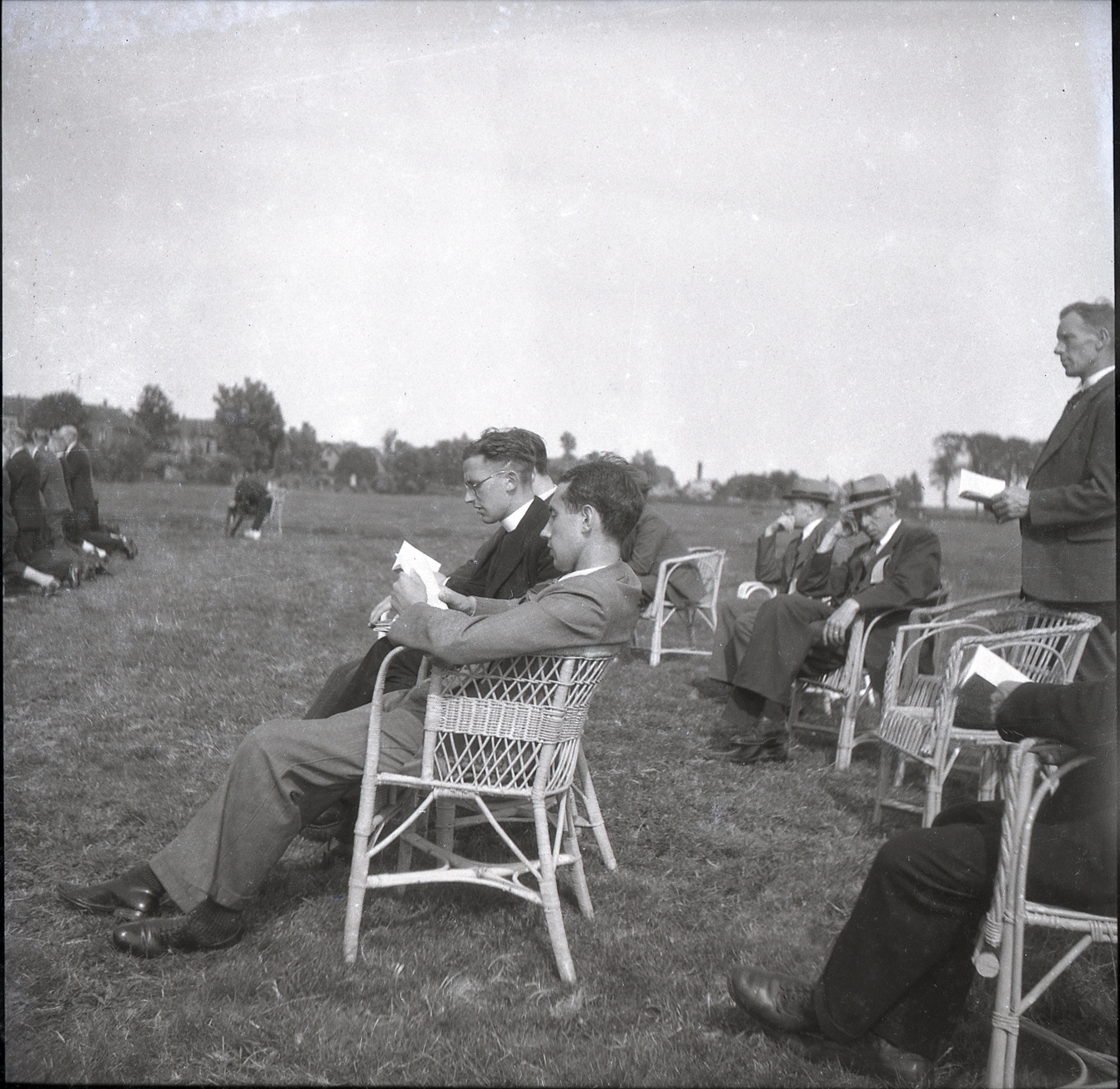 festiviteiten,polder,bomen, weiland, klapstoel, openluchtvoorstelling, hoed, schoorsteen, programmaboekje |